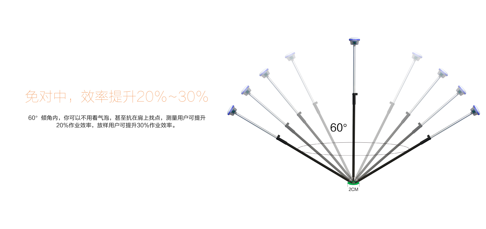 10 mm + 0.7 mm/°tilt(30°內(nèi)精度<2.5cm) |